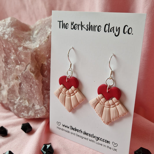 Pink & Red Macrame Inspired Heart Dangle Earrings