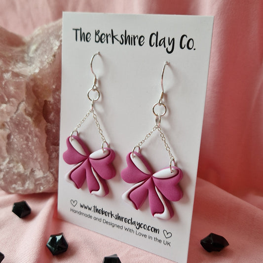 Pink Flowy Bow Dangle Earrings